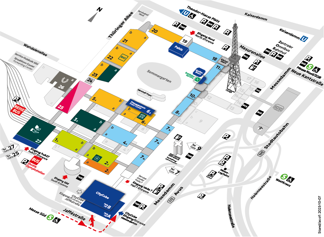 Im Folgenden finden Sie genaue Anreiseinformationen zur Eröffnung der Grünen Woche 2026 im CityCube Berlin, Halle B. |